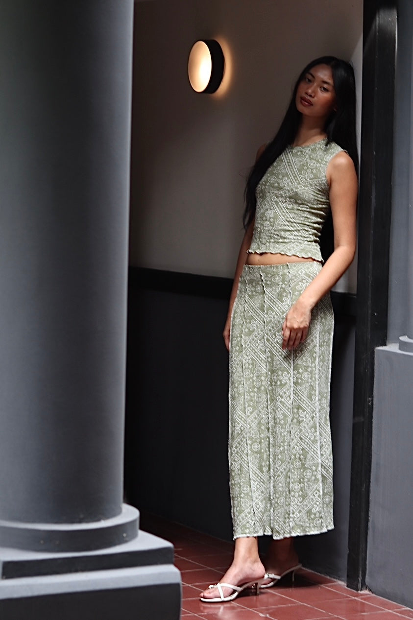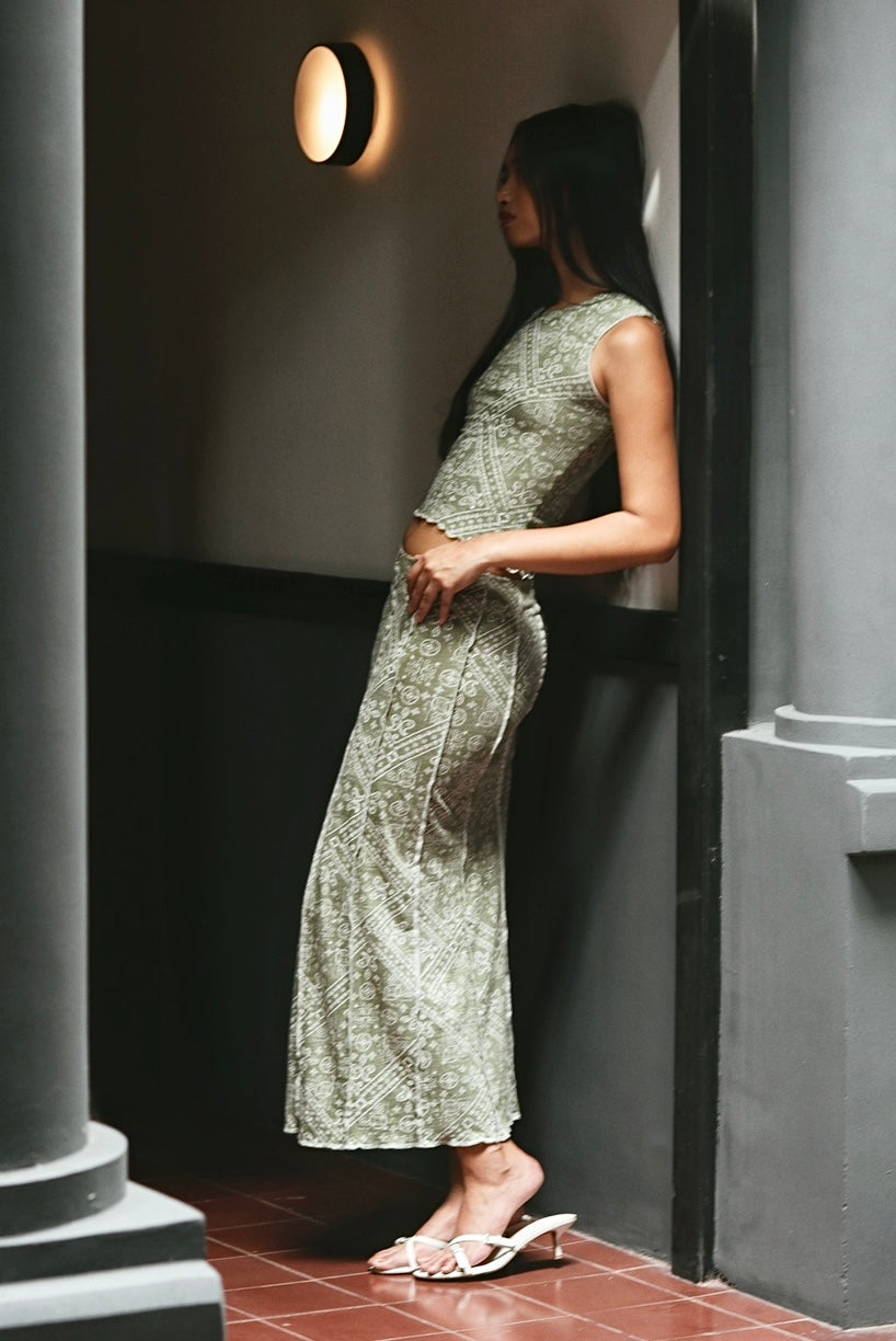 Ali Maxi Skirt in dead stock paisley print fabric. Panelled design all through out the skirt to create a vertical visible stitching.